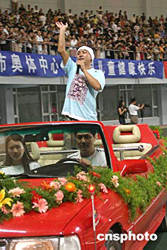 由中國兒童少年基金會主辦的“關(guān)愛兒童遠離傷害”中國明星足球隊對戰(zhàn)公益企業(yè)聯(lián)隊義賽八日晚在河北省秦皇島市舉行,來自中國香港演員張衛(wèi)健在比賽前的慈善晚會上獻歌助興。中新社記者:廖文靜