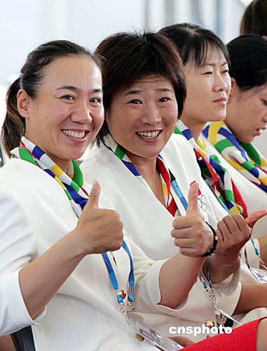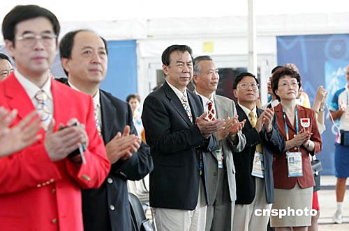 當(dāng)?shù)貢r間八月九日上午,參加雅典奧運(yùn)會的中國體育代表團(tuán)在雅典奧運(yùn)選手村舉行升旗儀式。中新社記者:毛建軍