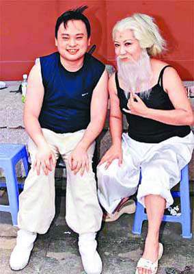 對于自己這個白衣長老的造型,薛家燕說:“本來不用粘這些胡子的,但我覺得粘上去會逼真很多,而且效果也很明顯,不過粘了上去以后你會覺得很辛苦,特別是這么熱的天氣!彪m然只是合作了幾天,但薛家燕對孔慶翔依然是贊不絕口,“他雖然是新人,但是我覺得他的演出已經(jīng)是很專業(yè)和投入,他很努力,每天的對白都背得很熟。其實在這部電影里,我們不需要他有特別的演出,只要做本能的演出就可以了,例如你們剛才看到的,召喚飛鳥來救我他只需在旁邊鼓掌就行了,而那些動作武打戲份就讓我和恬妞去分擔,我希望大家可以給點時間讓他去磨練!毖已鄬λ难莩龃蛄艘粋80分,欠缺的20分她認為應該是外界看了這部片以后給的。