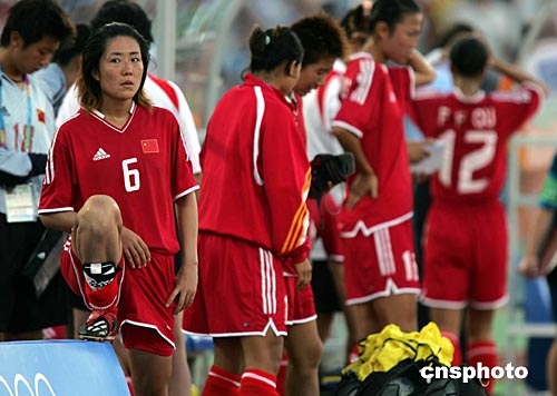 在奧運(yùn)會(huì)女足小組賽中,中國女足排出了老中青相結(jié)合的433陣型。第12分鐘,德國隊(duì)2號(hào)施特格曼大腳斜傳到禁區(qū)內(nèi),世界杯金靴普林茨搶躍起點(diǎn)頭球頂門,皮球應(yīng)聲入網(wǎng),德國隊(duì)1比0領(lǐng)先。落后的中國女足多次發(fā)動(dòng)長傳,但在高空優(yōu)勢(shì)明顯的德國隊(duì)面前沒有任何用處,反而被普林茨遠(yuǎn)門柱俯身沖頂將比分改為2比0。