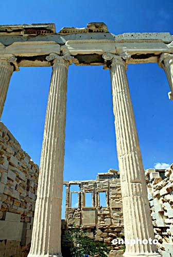 從雅典衛(wèi)城山頂遺留的殘?jiān)珨嘀,依稀還能領(lǐng)略到當(dāng)年古希臘的輝煌。中新社記者:王瑤