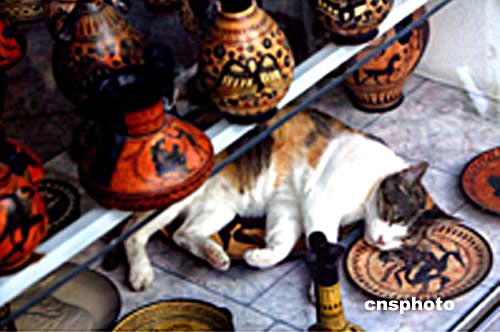 奧運(yùn)開(kāi)幕在即,盡管外界氣氛緊張,一只家貓?jiān)谘诺涞墓に嚻飞痰隀淮袄锖ㄈ蝗胨V行律缬浾?王瑤