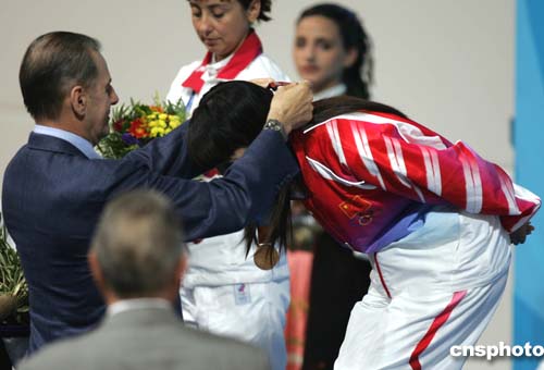 國際奧委會主席雅克·羅格不敢輕易相信自己的眼睛,最后一聲槍響之后,羅格輕輕地用手揉了一下眼睛,抬頭望了望大屏幕,緊張刺激的比賽讓他喘不過氣。當他確認雅典奧運會首枚金牌已被中國隊贏得之后,羅格向身邊的前奧運會冠軍張山伸出了手,“祝賀!”羅格很快恢復了往日的平靜,他需要為隨后的頒獎儀式做準備。