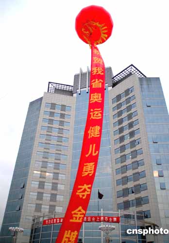 在八月十四日下午結(jié)束的雅典奧運會女子十米氣步槍決賽中,山東女射擊運動員杜麗奪得本屆奧運會首枚金牌。杜麗的母校山東省競技體育運動學(xué)校的師生扎制彩車在濟南街頭游行慶祝。作者:宋衛(wèi)東