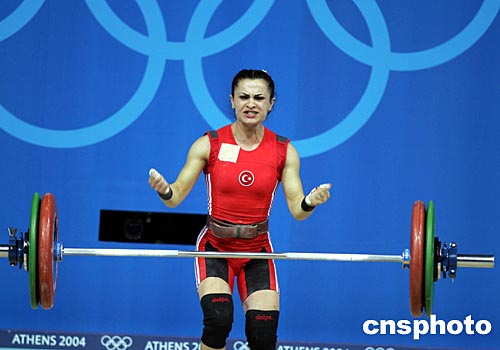 當?shù)貢r間8月14日晚,雅典奧運會舉重首日賽事展開,被視為中國“囊中之物”的女子四十八公斤級金牌,被土耳其選手TAYLAN NURCAN橫刀搶走。中新社記者:任晨鳴