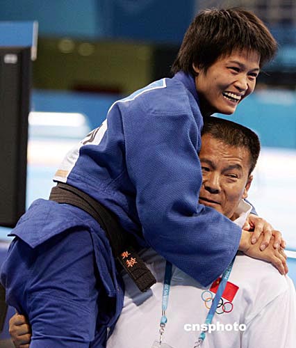 當(dāng)?shù)貢r(shí)間八月十五日,在雅典舉行的第二十八屆奧運(yùn)會(huì)女子五十二公斤級比賽中,中國選手冼東妹戰(zhàn)勝日本選手橫澤由貴獲得金牌。中新社記者:毛建軍
