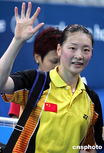 中國參加雅典奧運(yùn)會女子羽毛球單打比賽的選手龔睿那,當(dāng)?shù)貢r間8月16日以2比0輕松戰(zhàn)勝中國臺北的鄭韶婕,進(jìn)入前四名。作者:任晨鳴
