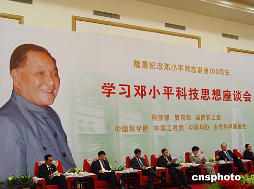 八月十六日下午,中國(guó)科學(xué)技術(shù)部、教育部、國(guó)防科學(xué)技術(shù)工業(yè)委員會(huì)等七家部委級(jí)單位在北京共同舉行學(xué)習(xí)鄧小平科技思想座談會(huì),紀(jì)念鄧小平百年誕辰。中新社記者:孫自法