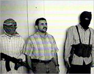 在一個名叫“圣地防衛(wèi)旅”的伊拉克組織交給“半島”臺的只有圖像的錄像帶中,可以看到兩名綁架者和這名身份尚未得到證實的“間諜”。美國和伊拉克當(dāng)局都未對此發(fā)表評論,這名特工的身份和相關(guān)信息一時間成為謎團(tuán)。