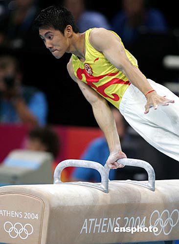 邢傲偉在鞍馬比賽中。