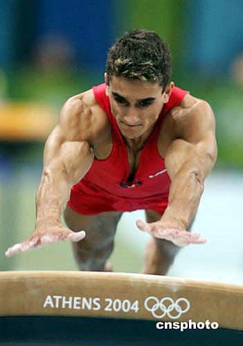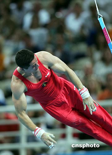 當(dāng)?shù)貢r間八月十六日晚,雅典奧運男子體操團體比賽在奧運體操比賽館舉行,羅馬尼亞隊獲得銅牌。中新社記者:毛建軍
