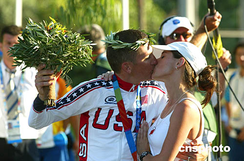 當(dāng)?shù)貢r(shí)間8月18日,美國自行車選手漢密爾頓在獲得奧運(yùn)冠軍后,妻子獻(xiàn)上一吻以示獎(jiǎng)勵(lì)。