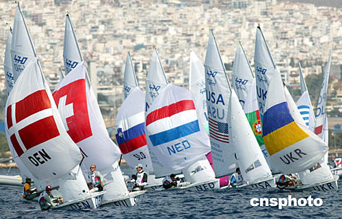 圖為在當(dāng)?shù)貢r(shí)間8月17日舉行的男子帆船帆板項(xiàng)目中,各參賽隊(duì)開局競爭激烈。