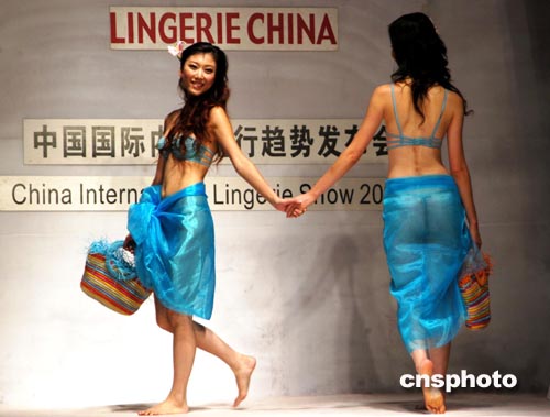 八月十九日,黛安芬、歐迪芬等世界多家知名內(nèi)衣品牌在北京舉行2005春夏中國內(nèi)衣流行趨勢發(fā)布會(huì),模特通過六個(gè)主題從色彩和風(fēng)格方面詮釋未來內(nèi)衣形象。中新社記者:王麗南