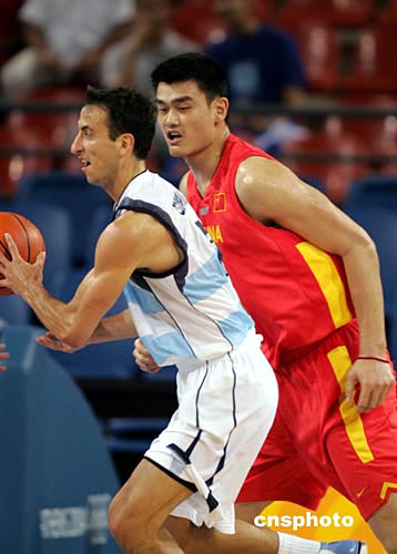 中新社雅典八月十九日電(記者王祖敏)類似新西蘭隊?wèi)?zhàn)勝塞黑的冷門,并沒有在中國男籃與阿根廷隊的比賽中重現(xiàn)。自始至終處于被動挨打地位的中國男籃以五十七比八十二負于上屆世錦賽亞軍,三戰(zhàn)兩負的戰(zhàn)績使小組出線前景進一步黯淡。