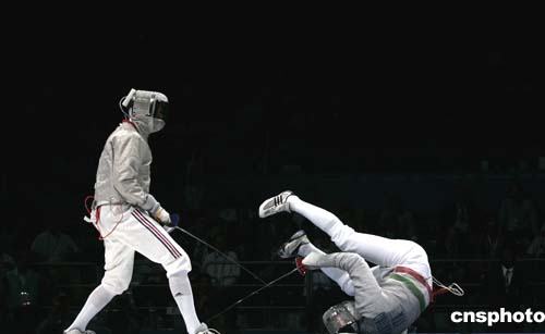 圖為當(dāng)?shù)貢r(shí)間8月19日進(jìn)行的男子擊劍團(tuán)體賽中,獲得冠軍的法國(guó)隊(duì)在決賽中對(duì)陣意大利隊(duì)的場(chǎng)景。