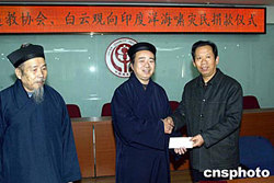 一月四日,中國(guó)道教協(xié)會(huì)、白云觀通過(guò)中華慈善總會(huì)向印度洋海嘯災(zāi)民捐款二十萬(wàn)元人民幣。中新社記者:史利