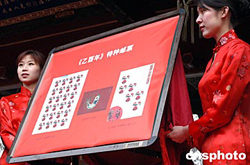 中國(guó)《乙酉年》特種郵票首發(fā)式1月5日在北京東岳廟瞻岱門(mén)前舉行!兑矣夏辍诽胤N郵票,是中國(guó)發(fā)行的第三輪生肖郵票中的第二套。在十二生肖排序中,雞象征著振奮和吉祥。中新社記者:鄒憲