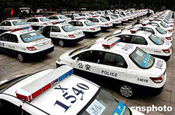 一月五日上午,富力地產(chǎn)集團(tuán)向廣州見(jiàn)義勇為基金會(huì)贈(zèng)送百輛巡邏警車(chē)儀式在中山紀(jì)念堂廣場(chǎng)舉行。圖為百輛巡邏警車(chē)大展示。作者:陳文