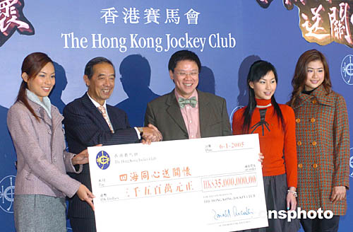 香港賽馬界包括市民﹑馬迷和員工透過(guò)馬會(huì)的多個(gè)渠道慷慨解囊﹐為南亞地震海嘯賑災(zāi)捐款3500萬(wàn)港元。中新社記者:趙振清