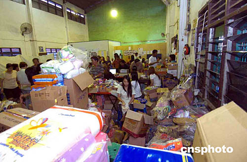 印度尼西亞華族團體的救援物資源源不斷送到在棉蘭市的難民收容所,大批義工挑燈夜戰(zhàn)分配物資,將生活必需品及時送到災(zāi)民手中。作者:洪少葵