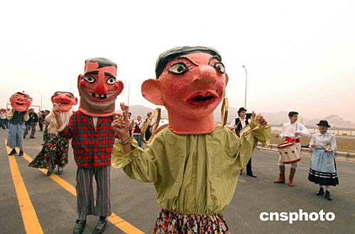 葡國(guó)土風(fēng)舞等表演為“圣火傳遞萬(wàn)人行”助興。作者:梁永強(qiáng)