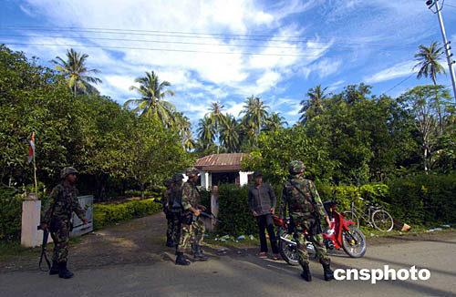 1月9日,在印度尼西亞班達亞齊災(zāi)區(qū),軍警荷槍實彈嚴(yán)防叛軍襲擊,災(zāi)區(qū)善后仍在繼續(xù),賑災(zāi)情況嚴(yán)峻。作者:洪少葵