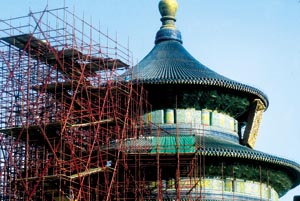 中新網(wǎng)1月11日電 北京天壇核心景觀祈年殿古建筑近日正式開(kāi)工修繕,整個(gè)工程計(jì)劃于2006年9月1日前竣工。北京日?qǐng)?bào)報(bào)道,屆時(shí)將恢復(fù)其康乾盛世時(shí)的歷史原貌。這是自1971年大修后,祈年殿首次進(jìn)行較大范圍的修繕。