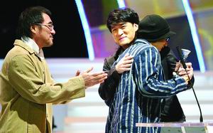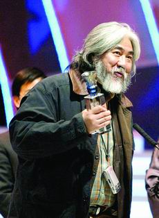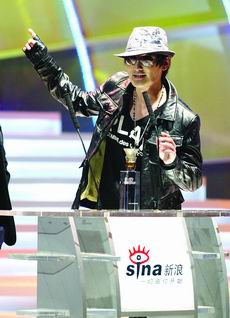 昨晚,掀起現(xiàn)場氣氛最高潮的是當(dāng)選“感動藝人”的傅彪。傅彪上臺后因一度哽咽而中斷了講話:“不久前有一個普通的演員在醫(yī)院接受治療,他的愛人告訴他在新浪網(wǎng)上接收了上萬條的祝福。于是奇跡出現(xiàn)了,今天我站在這里了。我代表我的愛人、我的兒子對網(wǎng)友表示深深的謝意!备当氡硎荆骸拔乙恢倍继嵝炎约阂诠_場合忍住,但是今天太感動了。”他希望2005年能夠重返銀幕小試身手。