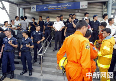 泰國電視臺畫面顯示,救援人員正在將傷者從“泰國文化中心”地鐵站送上救護車。