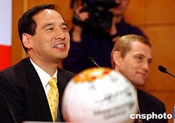 由ING安泰人壽保險(xiǎn)冠名贊助的“安泰曼聯(lián)杯”足球賽,將在7月于香港舉行,1月17日,香港足球總會(huì)及贊助商召開(kāi)記者會(huì),公布英超聯(lián)勁旅曼聯(lián)與香港足球隊(duì)的賽事。作者:洪少葵