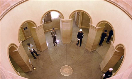 美國總統(tǒng)布什的連任就職典禮定于本月20日舉行。成功擊敗民主黨候選人克里的布什即將再次舉起右手,重復(fù)4年前的誓言。為保證儀式的順利進(jìn)行,有關(guān)部門9日在國會大廈舉行了一次預(yù)演。