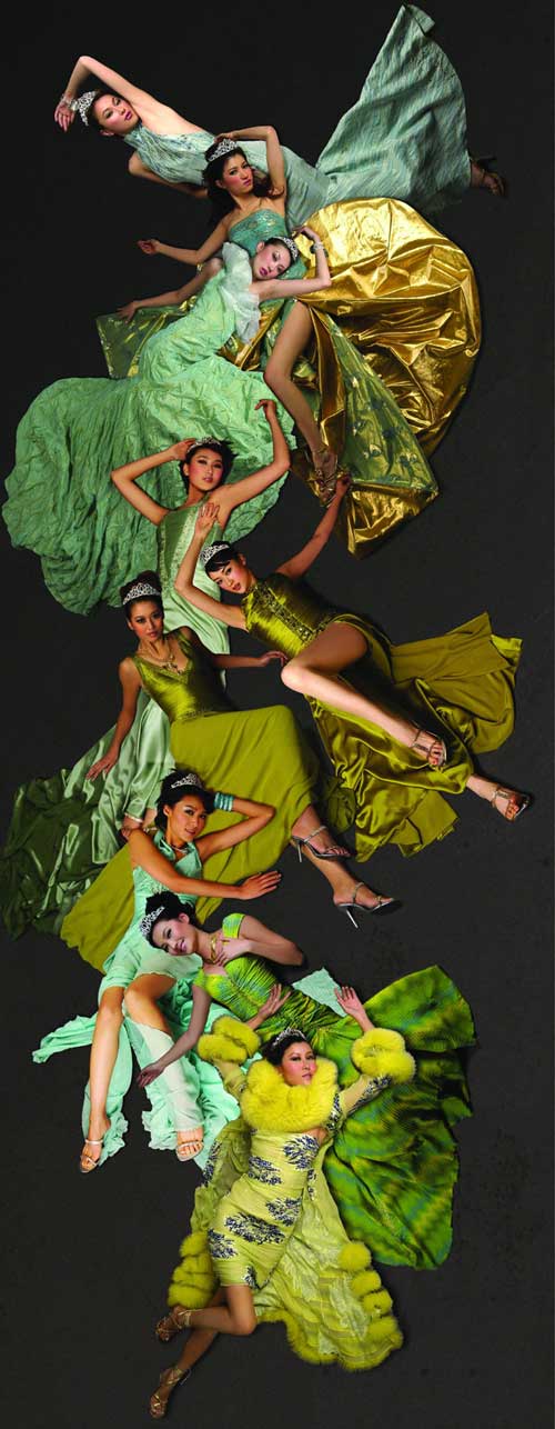2004中國時尚大獎--年度中國最佳職業(yè)時裝模特,王敏(大)、馬力、韋杰、賈妮妮、欒鳳玲、邊彥陽、劉巾薇、張?zhí)、戴小?由下至上)(圖片提供:黑冰攝影服裝提供:WHITE COLLAT白領(lǐng))