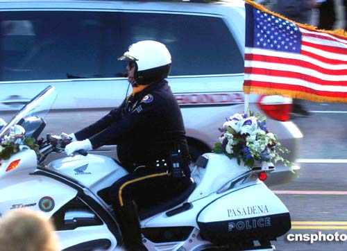 美國(guó)各大城市在總統(tǒng)布什就職典禮前夕加強(qiáng)安全保衛(wèi),洛杉磯騎警在街頭巡邏。作者:賈國(guó)榮