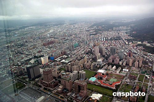 圖為站在三百八十二米高的觀景臺看到臺北的景色。