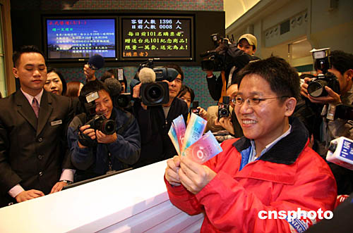 臺北一O一大樓觀景臺今日開始試運(yùn)營,前一百零一位參觀者可獲得禮品。中新社記者:邢利宇
