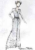 不過(guò)從白宮發(fā)布的設(shè)計(jì)圖來(lái)看,第一夫人此次的服裝似乎沒有什么新意可言,特別是在就職大典上的禮服更是沒有多少懸念,明顯的傳統(tǒng)保守選擇。白天是一件白色的凱斯咪套裝和搭配的套裙。晚上的宴會(huì)上,勞拉則會(huì)著一身銀藍(lán)色的薄紗曳地晚禮服,上墜有奧地利水晶,外配冰藍(lán)色外套。銀藍(lán)色的晚禮服是勞拉在四天慶典上的主打服飾。