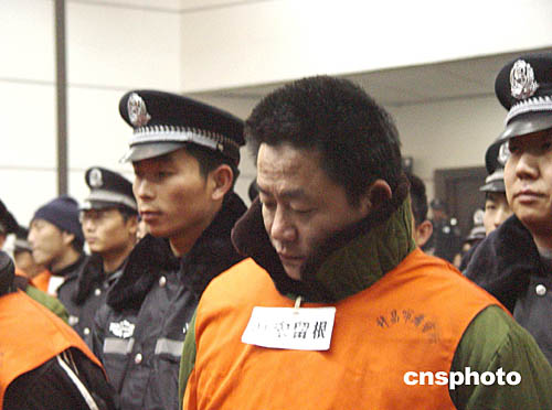 | 一月二十一日上午九時(shí),河南許昌市中級(jí)人民法院對(duì)“中原涉黑第一案”——宋留根、馬獻(xiàn)洲、郝洪山特大涉黑團(tuán)伙案,進(jìn)行一審宣判。首犯宋留根以組織領(lǐng)導(dǎo)黑社會(huì)罪、故意殺人罪、故意傷害罪等八項(xiàng)罪名,被宣判執(zhí)行死刑,剝奪政治權(quán)利終身,并附帶民事訴訟,賠償原告人經(jīng)濟(jì)損失五萬元人民幣。圖為宋留根在法庭上。作者:胡珂