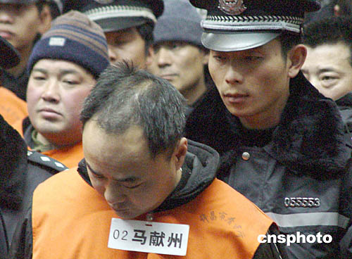 一月二十一日上午九時(shí),許昌市中級人民法院對“中原涉黑第一案”——宋留根、馬獻(xiàn)州、郝洪山特大涉黑團(tuán)伙案,進(jìn)行一審宣判。圖為主犯馬獻(xiàn)洲被判處死刑,剝奪政治權(quán)利終身。以宋留根為首的涉黑犯罪團(tuán)伙是五十年來河南最大的犯罪集團(tuán)。作者:胡珂