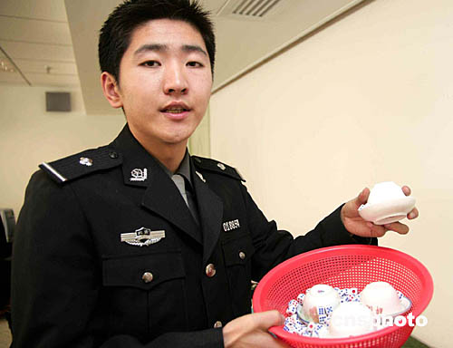 北京警方公布:自去年十二月上旬正式部署查禁賭博專項(xiàng)行動(dòng)以來(lái),共破獲網(wǎng)絡(luò)賭博案件八起,抓獲涉案人員三十六人;還打掉“百家樂(lè)”、“六合彩”、“皇帝公司賭”、“扎金花”等傳統(tǒng)聚眾賭博窩點(diǎn)五十七個(gè),抓獲賭博人員六千五百三十九人,收繳賭博資金三百八十六萬(wàn)余元人民幣。圖為警員展示部分賭具。作者:劉永生