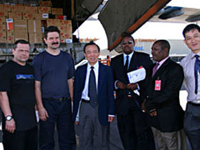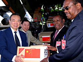這批救災(zāi)物資包括食品、藥品、帳篷、發(fā)電機、生活用品及辦公設(shè)備等,其中捐贈給索馬里的物資價值800萬元人民幣,捐贈給肯尼亞的物資價值285萬元人民幣。中國駐肯尼亞大使郭崇立和肯尼亞總統(tǒng)府及索馬里總統(tǒng)府官員當(dāng)天到機場接收了這批救災(zāi)物資。