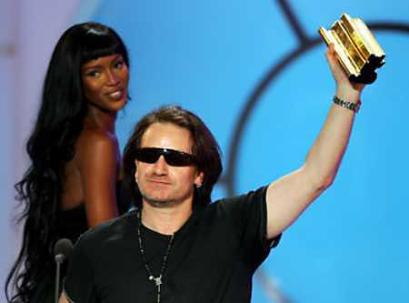 當(dāng)晚的頒獎(jiǎng)演出高潮迭起,異彩紛呈,拉丁天后珍妮弗-洛佩茲以一身清純的學(xué)生裝吸引了所有人的眼球。名模Naomi Campbell也驚艷出場(chǎng),為U2樂(lè)隊(duì)頒發(fā)了特殊成就獎(jiǎng)。