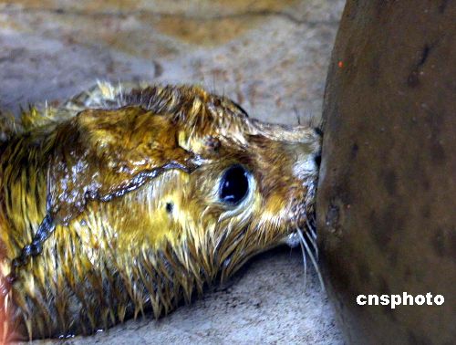 2005年1月24日早晨,在秦皇島海洋歡樂(lè)公園的水族館內(nèi),一只出生僅一天的小斑海豹全身覆蓋著土黃色的皮毛,在媽媽的產(chǎn)房?jī)?nèi)享受著母愛(ài)。據(jù)了解,這只可愛(ài)的小海豹在秦皇島市是人工喂養(yǎng)條件下降生的第一只小海豹,它的媽媽名叫“公主”,是6年前來(lái)到港城的,經(jīng)過(guò)幾年的人工喂養(yǎng),2004年10月份訓(xùn)養(yǎng)員發(fā)現(xiàn)溫順的公主懷孕了,在為其安排了一間單獨(dú)的產(chǎn)房后,1月23日早晨4點(diǎn)左右時(shí),工作人員聽(tīng)到公主奇特的叫聲,5點(diǎn)多時(shí),發(fā)現(xiàn)公主身邊多了一只小海豹和一堆胎盤(pán)。斑海豹別名海豹、港海豹,海豹科Phocidae,分布主要在渤海、黃海、東海也有發(fā)現,個(gè)別遠(yuǎn)達(dá)南海,屬國(guó)家二級(jí)保護(hù)動(dòng)物。也是惟一在我國(guó)渤海沿岸繁殖的鰭腳類(lèi)動(dòng)物。學(xué)忠 攝