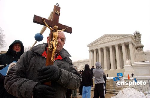 2005年1月24日,數(shù)萬民眾聚集在美國首都華盛頓最高法院前,舉行聲勢浩大的“反墮胎”游行,呼吁全面禁止墮胎,布什總統(tǒng)對此表示支持。Ic/cnsphoto 攝