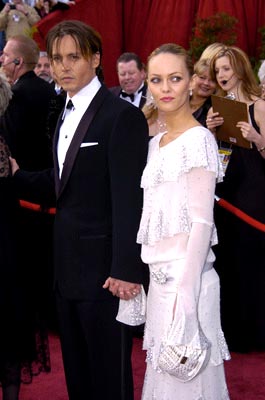憑《加勒比海島》一片獲得最佳男主角提名的強尼-德普和女友維尼莎·帕萊茲一起走76屆奧斯卡的星光大道。
