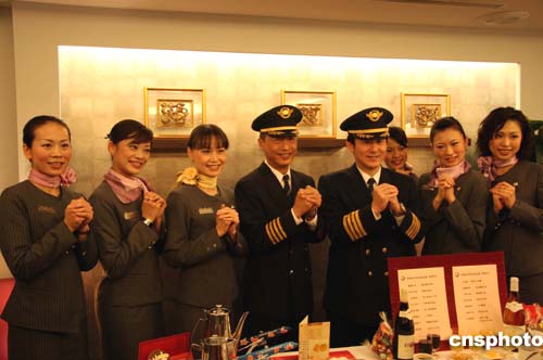 圖:臺灣“復(fù)興”航空首航臺商春節(jié)包機機組人員