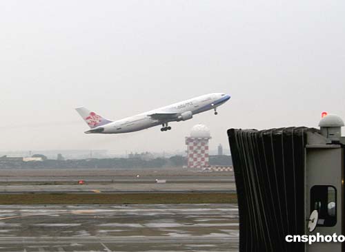 一月二十九日上午,首航北京的臺(tái)灣華航公司臺(tái)商春節(jié)包機(jī)從臺(tái)北起飛。作者:邢利宇