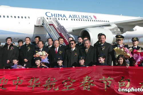 臺灣中華航空公司的民航班機(jī)一月二十九日十一時五十八分飛抵北京首都國際機(jī)場,這是五十六年來臺灣民航航班首度飛抵北京。