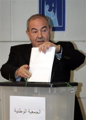 伊臨時(shí)政府總理阿拉維在巴格達(dá)參加投票。
