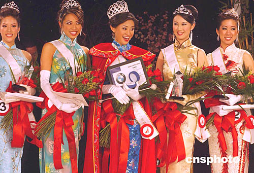北京姑娘馮倩在美國西部時(shí)間一月二十九日晚摘取二00五年洛杉磯華埠小姐選美的皇后桂冠。中新社記者:賈國榮